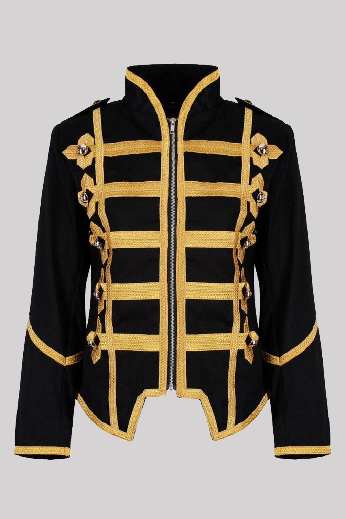 Our military style jacket is a true rock music staple, tried and tested by the biggest icons out there, so you know you can’t go wrong. It’s a fashion statement that has lasted decades and worn by too many stars to name. Also known as hussar jackets or drummer jackets, we have styles for both men and women. Sleeveless options, as well as a number of different trimmings such as gold, silver and red are available to choose from.